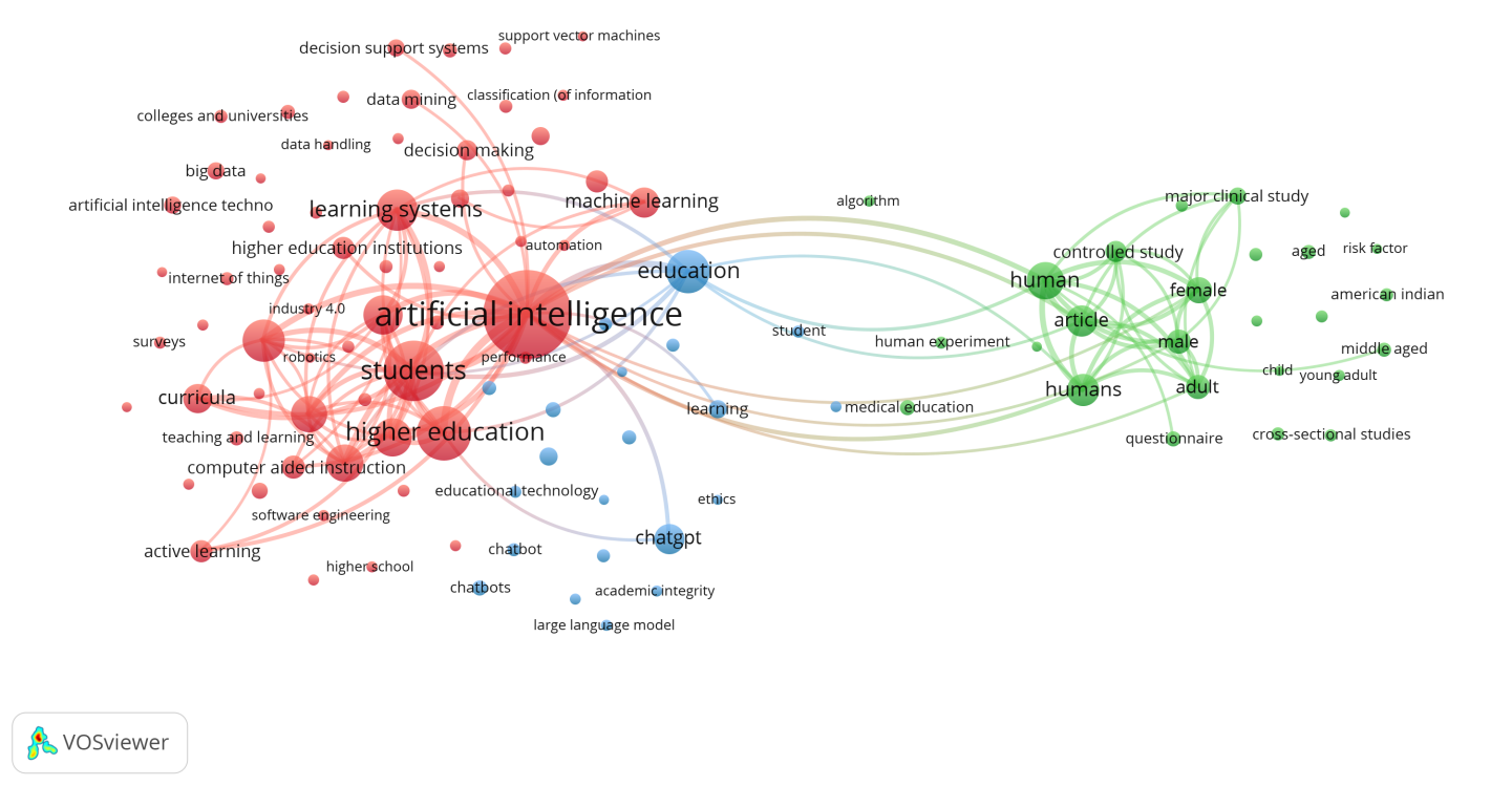 This study conducts a comprehensive bibliometric analysis to map the landscape and research trends of artificial intelligence (AI) applications within higher education. Utilizing data from the Scopus database, encompassing 4,696 datasets from 1939 to 2024, we employed VOSviewer for visualizing and analyzing co‑authorship networks, citation patterns, and keyword occurrences. The analysis identifies primary research areas, influential authors, and emerging topics, offering valuable insights into the dynamic field of AI in higher education. Key findings include the identification of significant research themes such as AI applications in education, student engagement, and the development of learning systems. Influential contributors were highlighted for their substantial impact on the research landscape. The study also revealed strong collaborative networks, particularly involving key figures, underscoring the importance of co‑authorship in advancing AI research. Strong collaborative networks refer to the co‑authorship and international partnerships that connect these contributors, producing high‑impact research through shared expertise, resources, and cross‑regional knowledge exchange. The findings validate the hypotheses that significant research areas and influential contributors can be identified, and that collaborative networks and emerging technologies play crucial roles in the field’s advancement. Influential contributors are the authors, institutions, or countries whose publications and citation impacts significantly shape the research landscape of AI in higher education, setting key directions for scholarship and practice. This study provides a roadmap for future research, emphasizing the importance of strategic collaborations and innovative technologies in shaping the future of AI in higher education.