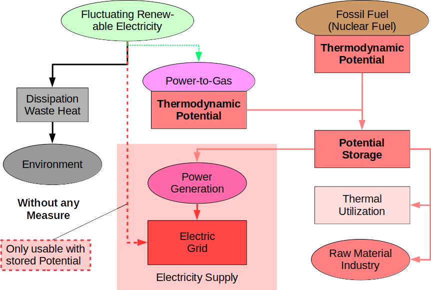 Generous subsidies and “technological openness” cannot fulfill European goals of affordability, environmental compatibility, and security of supply as recent blackouts and rising grid fees show. A clear structured definition of development targets based on TRL (Technological Readiness Level) is needed as used in aerospace industry. Affordability and security of supply provide the guidelines for a CO2 emission free system design. Energy transition will only work with a sufficient storable thermodynamic potential that guarantees power generation at any time with a cost‑effective energy storage technology. While H2 suffers from its low volumetric energy density and high cost a Closed Carbon Cycle (CCC) based on CH4 and C2H4 delivers an energy density up to more than 16 times higher than H2 with increasing carbon content. High thermodynamic system integration, including heat pumps and electrochemical O2 removal during the hydrocarbon‑forming reaction, increases efficiency. Electrolyzers and CH4/C2H4 forming reactors can be integrated in a steam generator design to optimize internal heat transfer and allow variable pressures. The conversion efficiency is estimated at up to 90% and a reconversion efficiency like pump storage hydro power plants. The concept fits very well with the current infrastructure of natural gas. It can supply industry with renewable hydrocarbons and use plastic waste for recovery. “Green fuels” can be delivered by using CO2 from bio‑energy utilization. H2 can be additionally generated by reforming like today with natural gas. Conversion efficiency, electricity price, full load operation hours, and investment cost mainly influence the gas price.