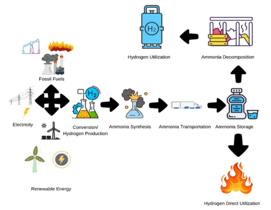 The simple storage of ammonia, combined with the tendency to liberate hydrogen without carbon dioxide emissions, has made ammonia breakdown popular among the research community in recent years. It has evolved as a promising method for hydrogen (H₂) production. The discussion highlights the critical role of catalyst composition, support materials, and promoters in enhancing activity, stability, and scalability. By comparing the advantages and limitations of each method, this work provides a roadmap for future research aimed at optimising NH₃-to-H₂ conversion for sustainable energy applications. This review article has discussed the current advances in ammonia breakdown technology for hydrogen generation, focusing on new materials and mechanical designs for catalysis especially emphasising thermocatalytic, photocatalytic, and electrocatalytic methods. Importance is given to exploring the recent developments of efficient and cost-effective catalysts, including monometallic (e.g., Ru, Ni) and bimetallic systems (e.g., Ru-Ni, Ni-Co), as well as metal hydrides. The Challenges, like high reaction temperatures, slow kinetics, and catalyst deactivation, are explored, and prospective solutions, such as low-temperature oxidative cleavage and plasma-assisted methods. The review also explores the mechanistic insights into NH₃ decomposition pathways and the synergistic effects of bimetallic catalysts. Moreover, it would help to update the knowledge about the catalytic reaction processes and emphasise the benefits and drawbacks of each strategy. Furthermore, the significance of discovering a cost-effective metal catalyst with better efficiency and higher reliability is also debated. This article may serve as a fundamental resource to scale up information about the catalytic production of hydrogen from ammonia.