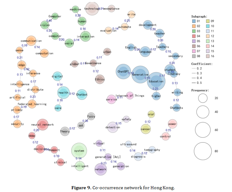 This study examines the visible thematic patterns of artificial intelligence (AI)–related research in Mainland China, Taiwan, Hong Kong, and Macao from 2021 to 2025. The analysis is based on Scopus-indexed journal articles and uses keyword frequency counts, VOSviewer density visualizations, and KH Coder co-occurrence networks. These methods are applied to describe how AI-related keywords appear across the four regions and how their distributions change during the five-year period. Across all datasets, terms such as machine learning, deep learning, and neural network appear frequently and occupy central positions in the visual outputs. The VOSviewer heatmaps show that regions with larger publication volumes display wider areas of keyword density, while regions with smaller datasets present more compact clusters. Beginning in 2024 and 2025, generative AI–related terms, including large language model and ChatGPT, become visible across all regions. The KH Coder networks illustrate that the four regions contain multiple clusters of co-occurring keywords, with differences in cluster size and distribution reflecting the underlying dataset scale and the topics present in each regional corpus. Overall, the results offer a descriptive account of how AI-related terms appear in the collected datasets and how their visible distributions vary among the four regions during the study period. The findings are intended to summarize observable patterns without inferring causal explanations or evaluating the significance of regional differences.