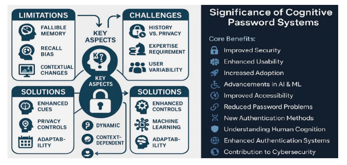 This study provides a comprehensive analysis of cognitive password systems as a secure and user-friendly alternative to traditional authentication mechanisms. Cognitive passwords leverage human memory, behavior, and perception to enhance usability while mitigating common security challenges such as poor memorability, password reuse, and susceptibility to attacks. The study systematically reviews various models, including graphical passwords, cognitive biometrics, and cognitive one-time passwords (OTPs), highlighting their strengths and limitations. To ensure a transparent and rigorous review, we employed a structured methodology comprising a multi-database literature search, clearly defined inclusion and exclusion criteria, and a thematic synthesis of the collected studies. Our findings indicate that cognitive password systems offer significant improvements in user experience and security but face critical challenges, including accessibility for individuals with cognitive or physical impairments, privacy concerns, vulnerability to social engineering, and scalability limitations. Furthermore, artificial intelligence (AI) emerges as a key enabler for enhancing personalization, adaptive authentication, and real-time security risk assessment. The study underscores the necessity of integrating AI thoughtfully to maximize the benefits of cognitive passwords. Overall, this research demonstrates the transformative potential of cognitive password systems in cybersecurity, emphasizing that addressing usability, privacy, and scalability challenges is essential for their practical adoption. The findings provide actionable insights for system designers, policymakers, and researchers aiming to advance secure and user-centered authentication frameworks.