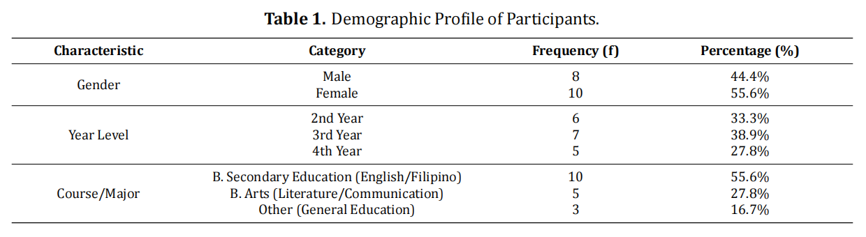 - Caliboso, J.; Bagalay, B.; Santiago, M.G.; et al. Literary texts as cultural tools: A study on contextualized learning strategies in Philippine higher education. Int. J. Cult. Hist. Relig. 2025, 7, 340–355.