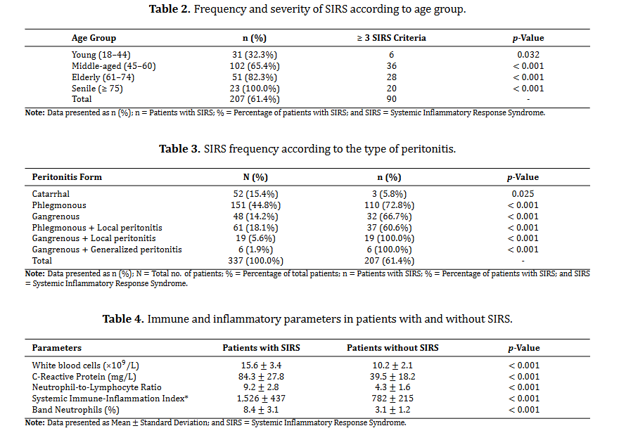 Akhmatov, S., Baibulatov, E., Atakoziev, A., Adilet, A., Abdiev, A., Omorov, R., & Vityala, Y. (2025). Systemic Inflammatory Response Syndrome in Elderly Patients with Acute Appendicitis: Age-Related Immune Changes and Perioperative Management. Trends in Immunotherapy, 9(3), 282–292. https://doi.org/10.54963/ti.v9i3.1342